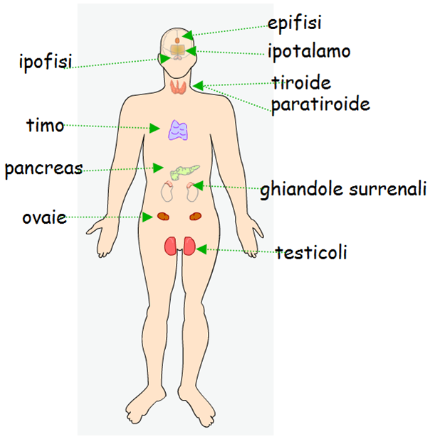 Il sistema endocrino è costituito da una serie di ghiandole (le ghiandole endocrine) che hanno la caratteristica di secernere il loro contenuto, gli ormoi, nel torrente circolatorio. Attraverso la circolazione, gli ormoni, molecole con struttura proteica, peptidica o lipidica, possono spostarsi dalla zona in cui sono stati sintetizzati fino all’organo bersaglio, ossia l’organo che possiede i recettori per quel tipo di ormone ed agire quindi in modo specifico.